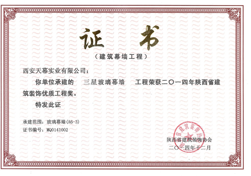2014年度陜西省建筑裝飾優(yōu)質(zhì)工程——西安韓國三星辦公樓項目