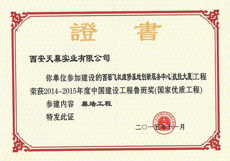 2014-2015年度中國建設(shè)工程魯班獎(jiǎng)——航投大廈