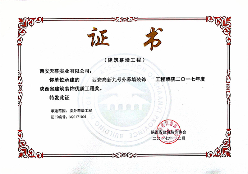 2017年度陜西省建筑裝飾優(yōu)質(zhì)工程——西安高新九號