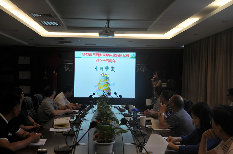 2015年6月27日,西安天幕實(shí)業(yè)有限公司十五周年慶典及半年總結(jié)會(huì)在公司一樓大會(huì)議廳正式召開(kāi),出席此次會(huì)議的人員有公司總經(jīng)理吳劍,黨支部書(shū)記呂鵬及天幕公司全體員工。
