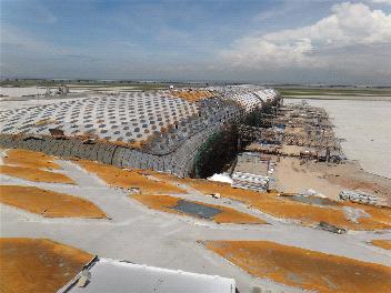 外幕墻施工由深圳三鑫、瑞華、方大共同承擔施工。幕墻總造價十幾個億,機身及兩翼分格為蜂巢狀分布,局部凹凸錯落有致,拐彎連接處全部采用雙曲面玻璃、鋁板面材,近2/3的板材由不規(guī)則造型拼接,可想而知施工安裝及設計技術要求 (圖為深圳T3機場)