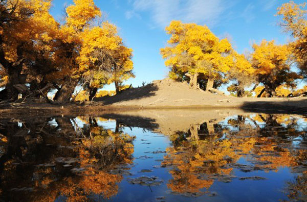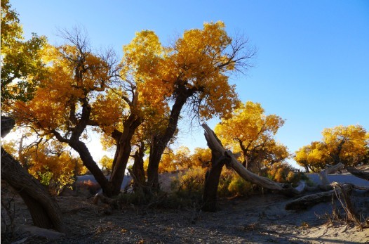 胡楊是大自然的一個(gè)偉大創(chuàng)造,正如在荒漠生態(tài)中創(chuàng)造了駱駝這種特型動(dòng)物一樣,也創(chuàng)造了胡楊這種特型植物。抗熱抗寒、抗風(fēng)抗沙、抗堿、抗旱、抗瘠,是演化在干旱地區(qū)的一種奇特的森林生存類型。