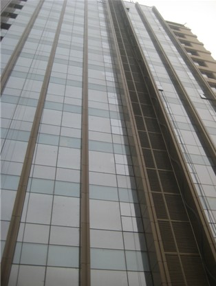 塔樓有玻璃幕墻、石材幕墻、造型鋁單板、S型格柵等,但這些都不算難,難度較大的是屋面格柵,吊籃必須加高措施在6米以上,我們已經(jīng)在預定計劃內(nèi)順利完成格柵安裝,這是大家辛勤工作的成果。