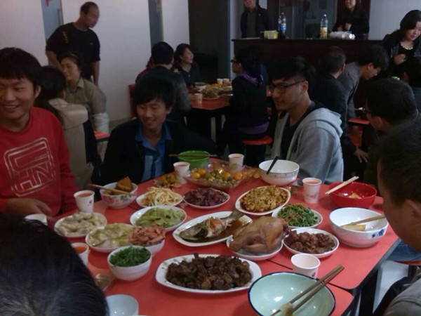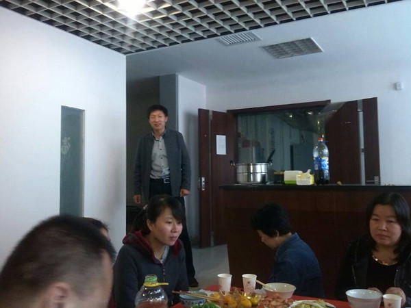 為慶祝西安珍澳實(shí)業(yè)有限公司與公司簽訂《西安珍澳酒店外裝飾建設(shè)工程項(xiàng)目合同》,公司特組織全體員工于2013年10月22日中午十二點(diǎn)半在公司食堂舉辦大型的聚餐活動(dòng)。行政總監(jiān)吳龍飛先生特地為此次聚餐準(zhǔn)備了豐盛的菜肴及可口的飲品。