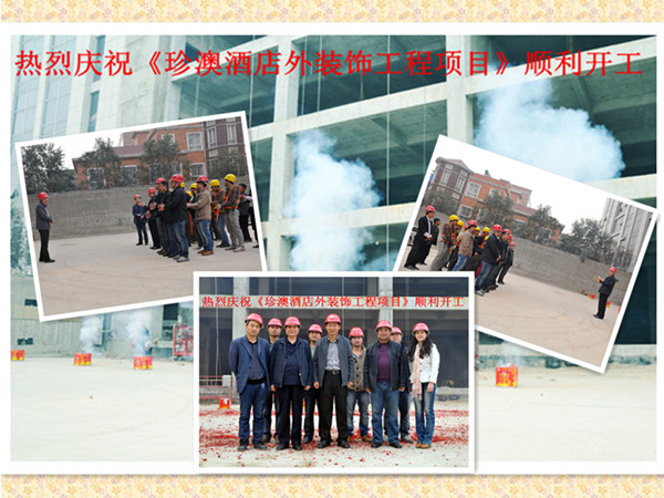 今天很有幸請(qǐng)到了建設(shè)方西安珍澳實(shí)業(yè)有限公司珍澳酒店外裝飾項(xiàng)目總負(fù)責(zé)人王總,外裝飾項(xiàng)目技術(shù)孫工。施工方西安天幕實(shí)業(yè)有限公司董事長(zhǎng)吳總,項(xiàng)目負(fù)責(zé)吳亞軍經(jīng)理,生產(chǎn)技術(shù)負(fù)責(zé)吳潤(rùn)全經(jīng)理,執(zhí)行技術(shù)負(fù)責(zé)劉經(jīng)理,質(zhì)量把關(guān)樊部長(zhǎng)。兩大公司領(lǐng)導(dǎo)及其各相關(guān)技術(shù)負(fù)責(zé)人齊聚在長(zhǎng)安區(qū)王寺鎮(zhèn),共同迎接一個(gè)美好的時(shí)刻?!段靼舱浒木频晖庋b飾建設(shè)工程施工項(xiàng)目》在此舉行隆重的開(kāi)工慶典儀式,為本次建設(shè)工程揭開(kāi)完美的序幕。我代表施工方天幕公司向工程的開(kāi)工表示熱烈的祝賀!對(duì)光臨開(kāi)工儀式的各位領(lǐng)導(dǎo)、各位來(lái)賓表示熱烈的歡迎并致以美好的祝愿!