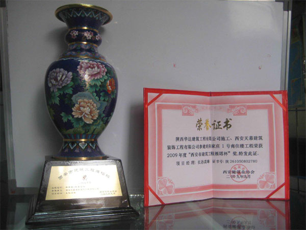 在施工過程中適逢西安地區(qū)高溫多雨季節(jié)來臨,項目部班子及全體施工人員牢記“出自天幕,必為精品”的理念,克服重重困難,狠抓工程質(zhì)量。同時嚴(yán)把安全生產(chǎn)關(guān),在整個施工過程中未出現(xiàn)任何安全事故及質(zhì)量問題,以優(yōu)良的施工質(zhì)量勇奪09年“雁塔杯”獎項。