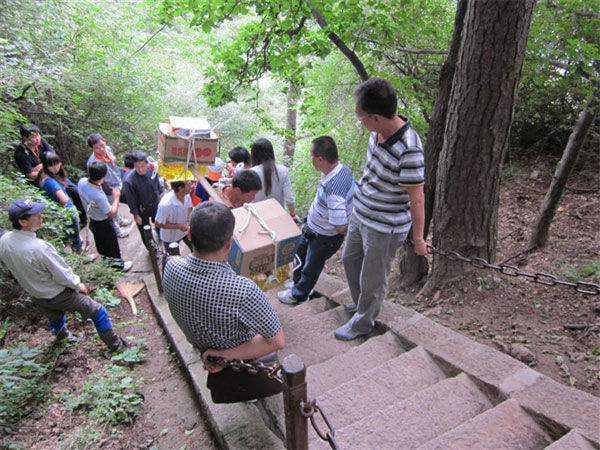 下山的時(shí)候,看著還在努力上山的人們,雖然有些筋疲力盡,心中卻是充滿(mǎn)自豪??删驮诖藭r(shí),心中的成就感卻被眼前的另一種景象所震驚,我們看見(jiàn)了兩個(gè)