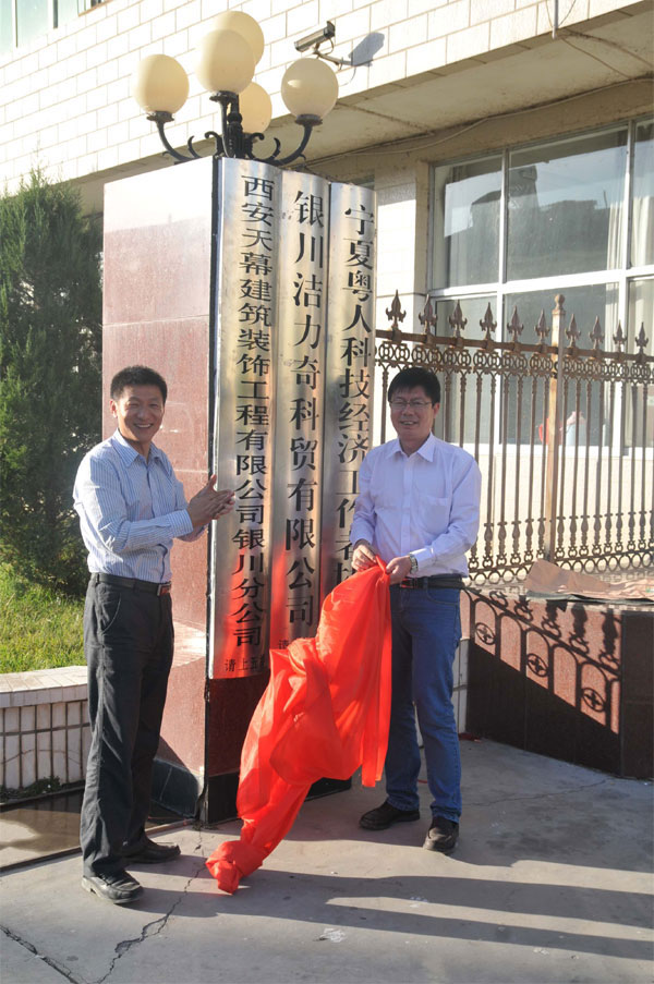 9月10日下午5時55分,伴隨著喜慶鞭炮清脆的轟鳴,我公司總經(jīng)理吳劍聯(lián)手銀川分公司負責人張五共同為“西安天幕建筑裝飾工程有限公司銀川分公司”揭牌。揭去紅綢的分公司名牌,在陽光的照耀下閃著奪目的金光,它在莊嚴地向社會宣告:我銀川分公司從這一時起隆重啟動運營。