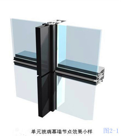單元式玻璃幕墻(圖2-1;圖2-2)是將構(gòu)成玻璃幕墻的單元(骨架材料、玻璃、保溫隔熱材料)在專門的工廠中裝配成為整框,然后將其運送至施工現(xiàn)場。其優(yōu)點是施工現(xiàn)場安裝簡便、快速,能夠縮短工程施工周期。
